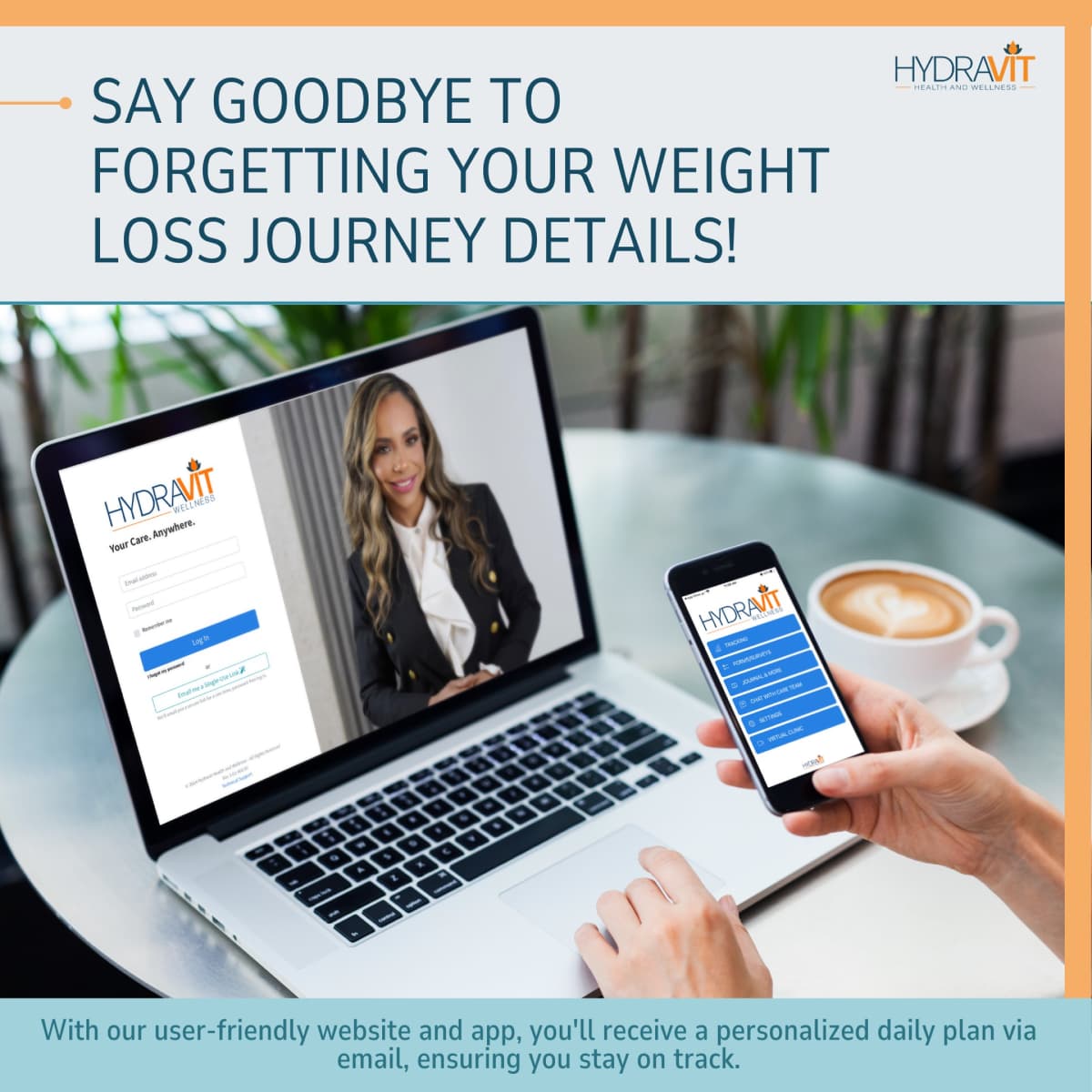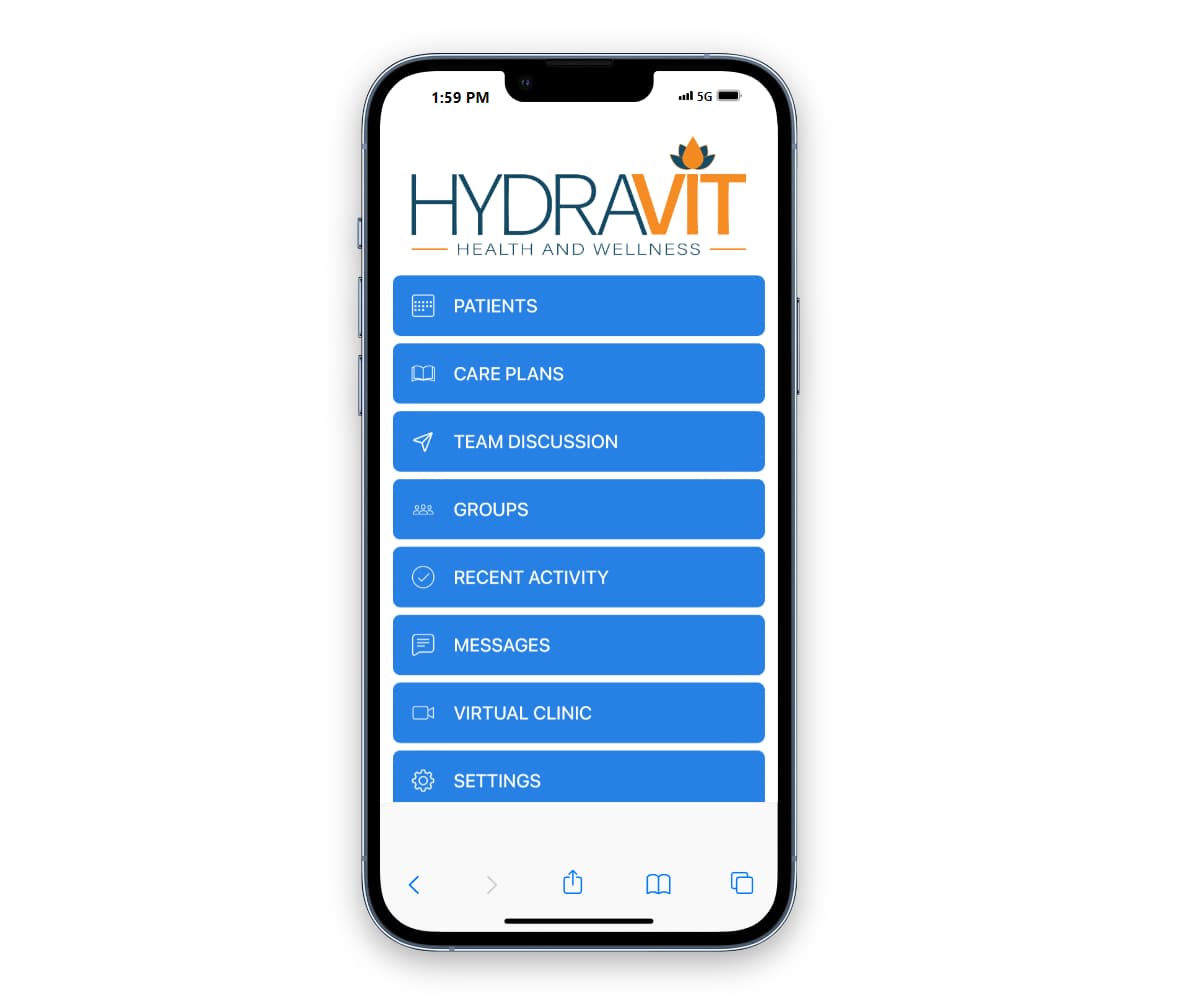 - HydraVit Health & Wellness Client Portal Access – communicate with your clinician and coach on demand!